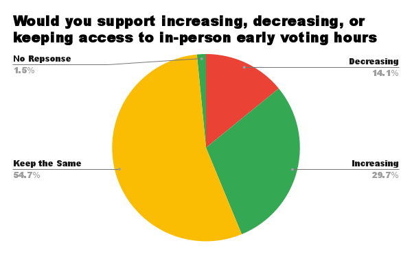 Would you support increasing, decreasing, or keeping access to in-person early voting hours the same in your community?