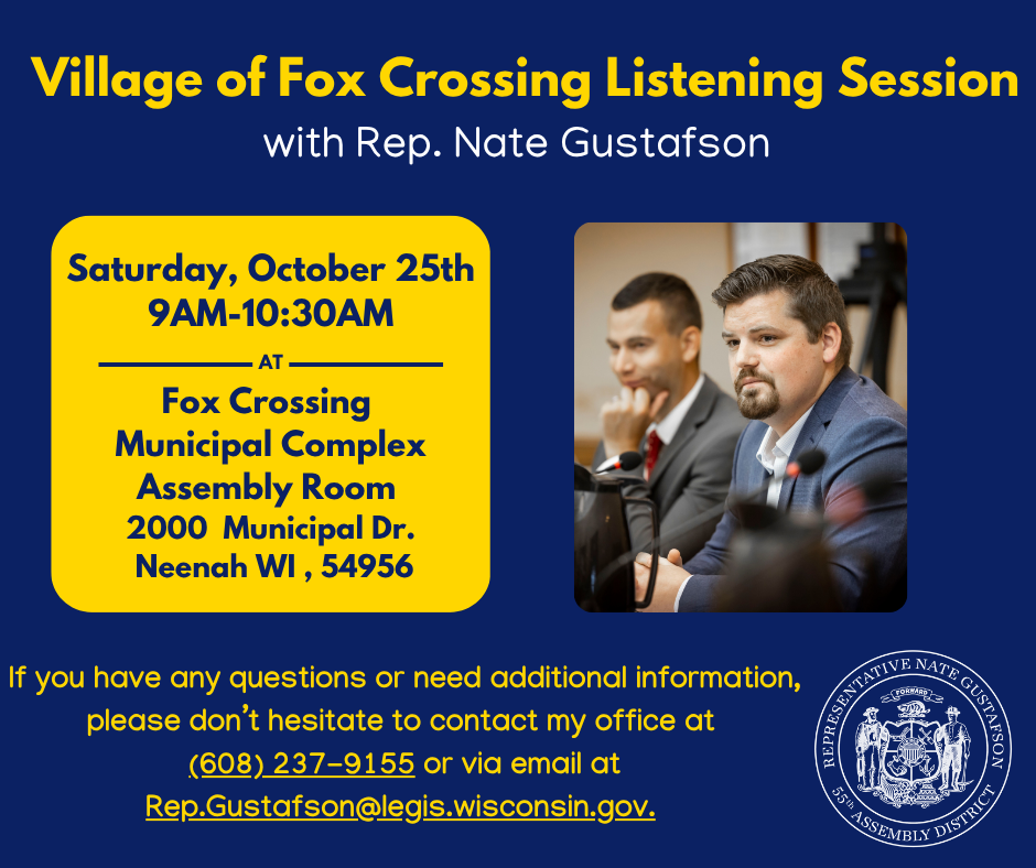 Stay connected by following me on Facebook, Instagram, and Twitter for the latest updates from the Capitol and around the district. You can also visit my legislative website at https://legis.wisconsin.gov/assembly/55/gustafson/.