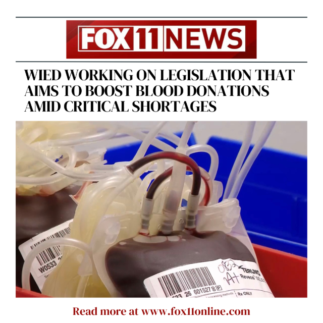 Click here to watch my latest interview with Fox 11 News, where I discuss how my bipartisan BLOOD Centers Act can help address our nation’s blood shortage.